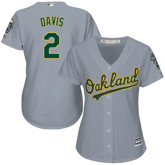 Home>MLB>Oakland Athletics>Khris Davis>Women's Majestic Oakland Athletics #2 Khris Davis Authentic Grey Road Cool Base MLB Jersey