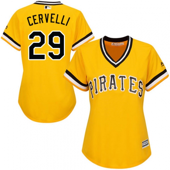 Home>MLB>Pittsburgh Pirates>Francisco Cervelli>Women's Majestic Pittsburgh Pirates #29 Francisco Cervelli Authentic Gold Alternate Cool Base MLB Jersey