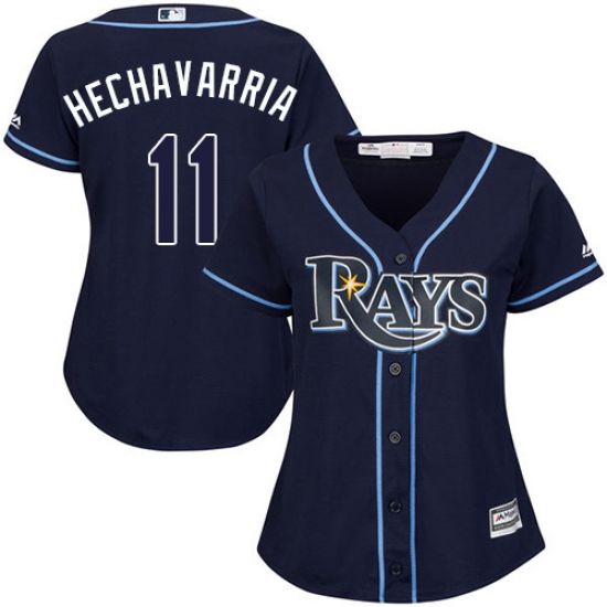 Women's Majestic Tampa Bay Rays #11 Adeiny Hechavarria Authentic Navy Blue Alternate Cool Base MLB Jersey