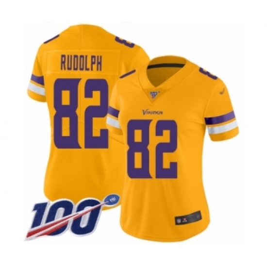 Women's Minnesota Vikings #82 Kyle Rudolph Limited Gold Inverted Legend 100th Season Football Jersey