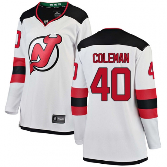 Home>NHL>New Devils Jersey>Blake Coleman>Women's New Jersey Devils #40 Blake Coleman Fanatics Branded White Away Breakaway NHL Jersey
