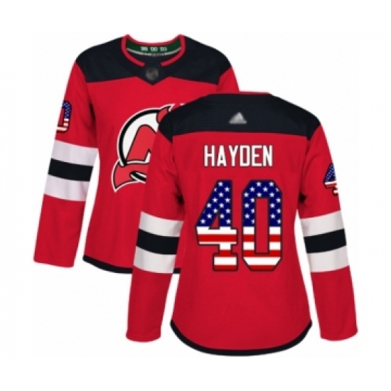 Women's New Jersey Devils #40 John Hayden Authentic Red USA Flag Fashion Hockey Jersey