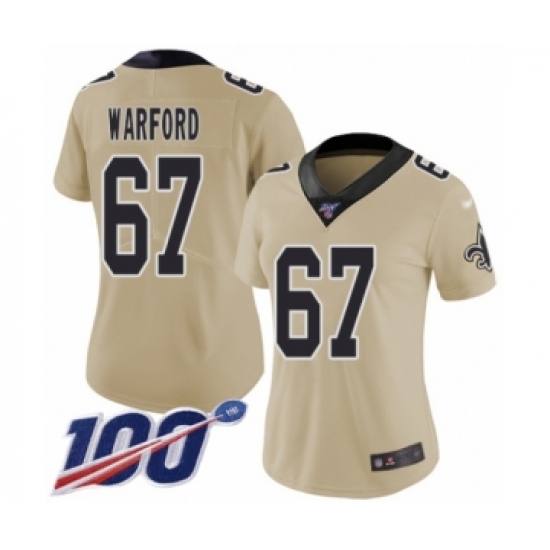>Women's New Orleans Saints #67 Larry Warford Limited Gold Inverted Legend 100th Season Football Jersey