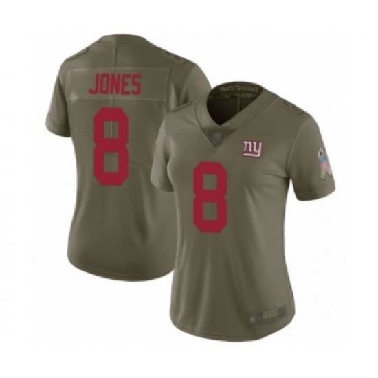 >Women's New York Giants #8 Daniel Jones Limited Olive 2017 Salute to Service Football Jersey