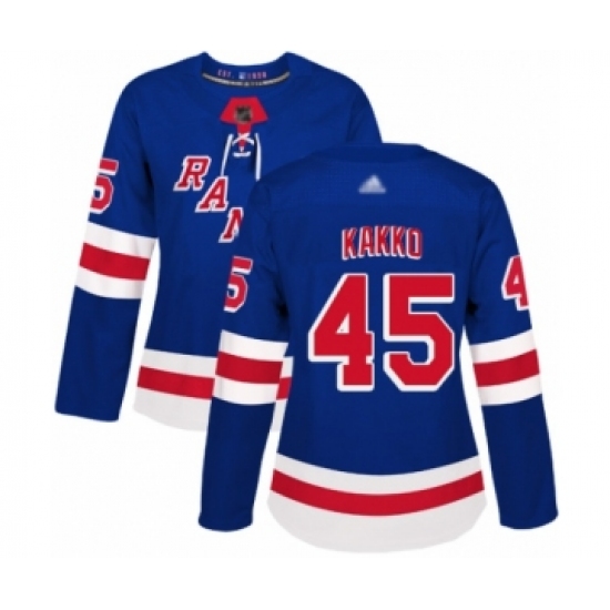 >Women's New York Rangers #45 Kaapo Kakko Authentic Royal Blue Home Hockey Jersey