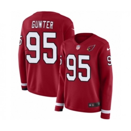 >Women's Nike Arizona Cardinals #95 Rodney Gunter Limited Red Therma Long Sleeve NFL Jersey