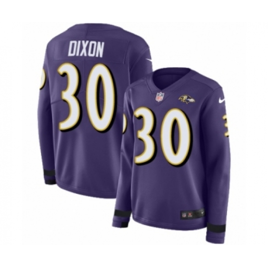 >Women's Nike Baltimore Ravens #30 Kenneth Dixon Limited Purple Therma Long Sleeve NFL Jersey