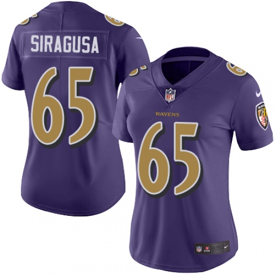 Women's Nike Baltimore Ravens #65 Nico Siragusa Limited Purple Rush Vapor Untouchable NFL Jersey