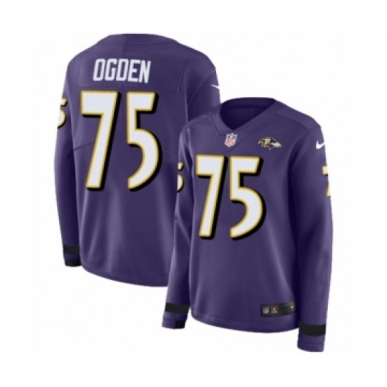 >Women's Nike Baltimore Ravens #75 Jonathan Ogden Limited Purple Therma Long Sleeve NFL Jersey