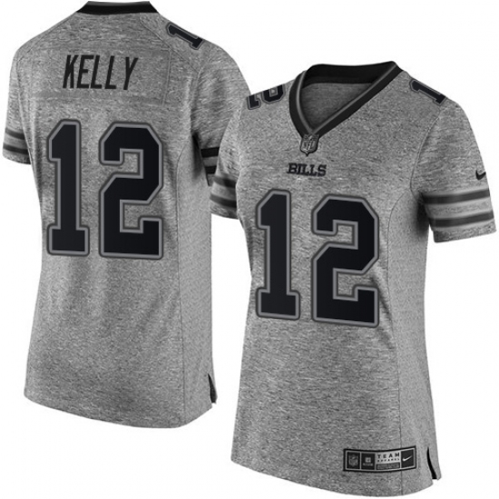 Home>NFL>Buffalo Bills>Jim Kelly>Women's Nike Buffalo Bills #12 Jim Kelly Limited Gray Gridiron NFL Jersey