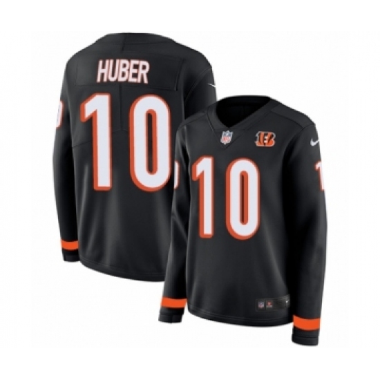 >Women's Nike Cincinnati Bengals #10 Kevin Huber Limited Black Therma Long Sleeve NFL Jersey