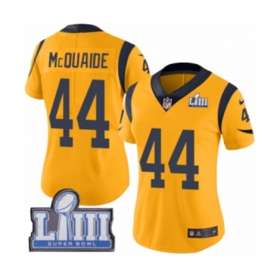 >Women's Nike Los Angeles Rams #44 Jacob McQuaide Limited Gold Rush Vapor Untouchable Super Bowl LIII Bound NFL Jersey
