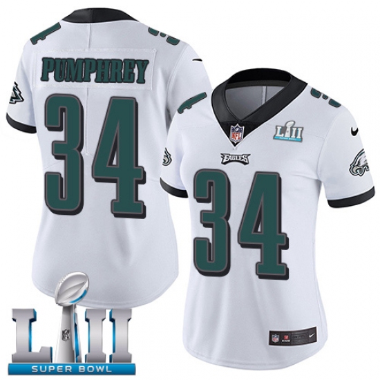 Women's Nike Philadelphia Eagles #34 Donnel Pumphrey White Vapor Untouchable Limited Player Super Bowl LII NFL Jersey