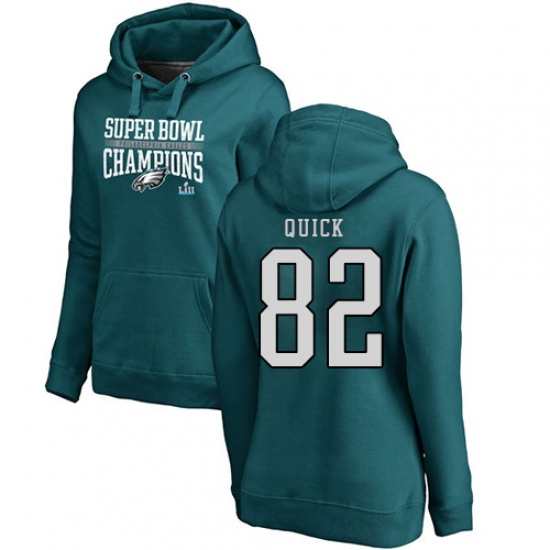 Women's Nike Philadelphia Eagles #82 Mike Quick Green Super Bowl LII Champions Pullover Hoodie