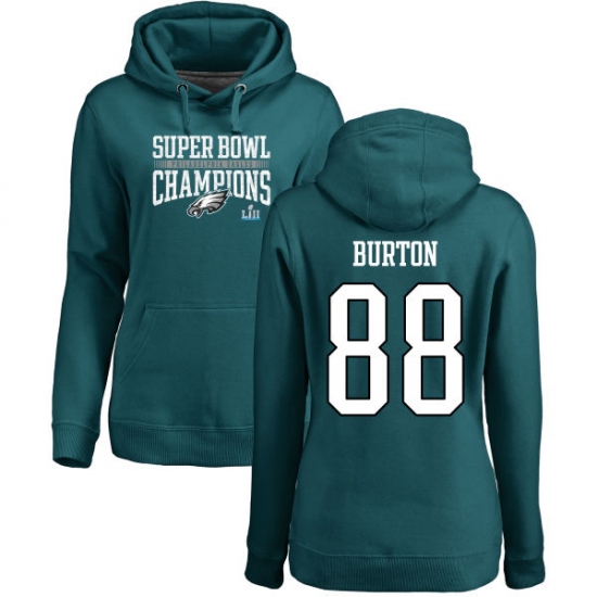 Women's Nike Philadelphia Eagles #88 Trey Burton Green Super Bowl LII Champions Pullover Hoodie