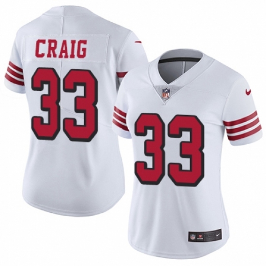 >Women's Nike San Francisco 49ers #33 Roger Craig Limited White Rush Vapor Untouchable NFL Jersey