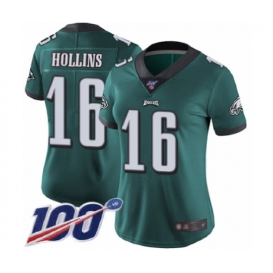 >Women's Philadelphia Eagles #16 Mack Hollins Midnight Green Team Color Vapor Untouchable Limited Player 100th Season Football Jersey