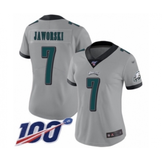 Women's Philadelphia Eagles #7 Ron Jaworski Limited Silver Inverted Legend 100th Season Football Jersey