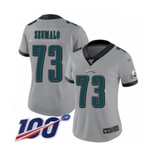 >Women's Philadelphia Eagles #73 Isaac Seumalo Limited Silver Inverted Legend 100th Season Football Jersey