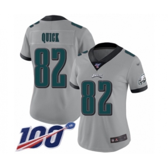 >Women's Philadelphia Eagles #82 Mike Quick Limited Silver Inverted Legend 100th Season Football Jersey