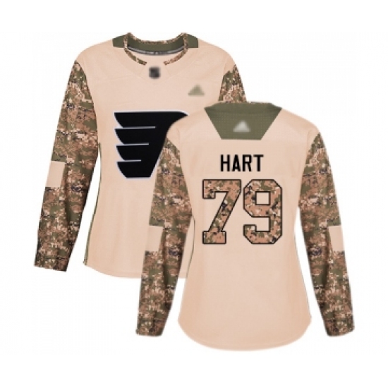 >Women's Philadelphia Flyers #79 Carter Hart Authentic Camo Veterans Day Practice Hockey Jersey