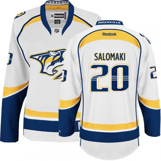 Home>NHL>Nashville Predators>Miikka Salomaki>Women's Reebok Nashville Predators #20 Miikka Salomaki Authentic White Away NHL Jersey