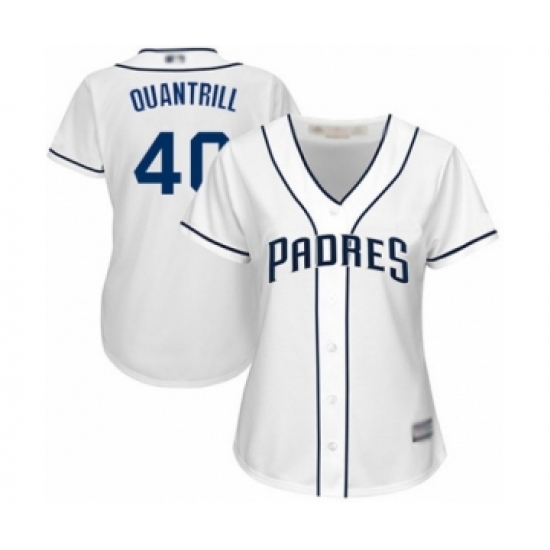 Women's San Diego Padres #40 Cal Quantrill Authentic White Home Cool Base Baseball Player Jersey