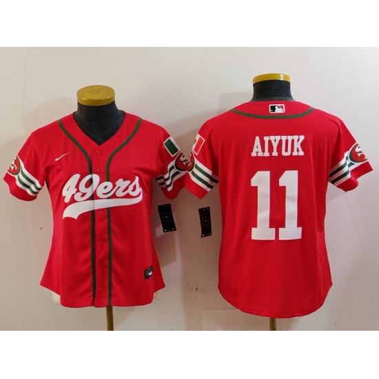 >Women's San Francisco 49ers #11 Brandon Aiyuk Red Mexico Cool Base Stitched Baseball Jersey