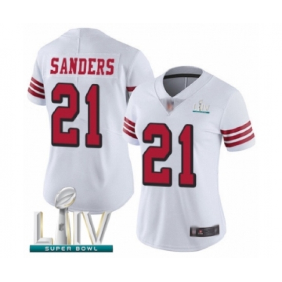 >Women's San Francisco 49ers #21 Deion Sanders Limited White Rush Vapor Untouchable Super Bowl LIV Bound Football Jersey