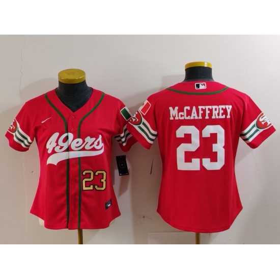 Women's San Francisco 49ers #23 Christian McCaffrey Red Mexico Cool Base Stitched Baseball Jerseys
