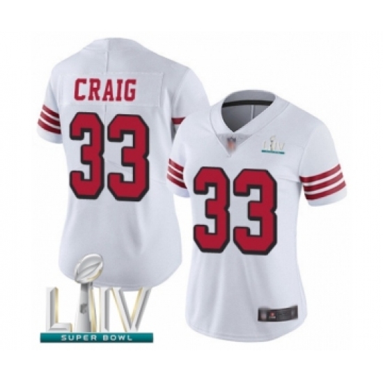>Women's San Francisco 49ers #33 Roger Craig Limited White Rush Vapor Untouchable Super Bowl LIV Bound Football Jersey