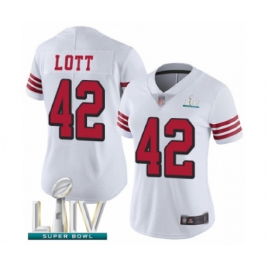 Women's San Francisco 49ers #42 Ronnie Lott Limited White Rush Vapor Untouchable Super Bowl LIV Bound Football Jersey