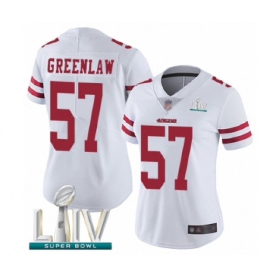 >Women's San Francisco 49ers #57 Dre Greenlaw White Vapor Untouchable Limited Player Super Bowl LIV Bound Football Jersey
