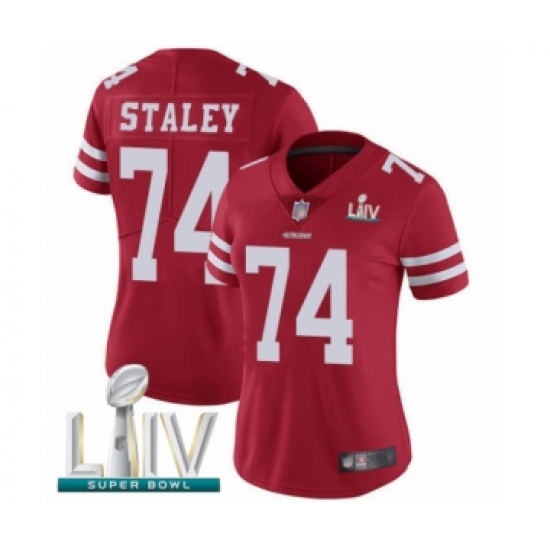 Women's San Francisco 49ers #74 Joe Staley Red Team Color Vapor Untouchable Limited Player Super Bowl LIV Bound Football Jersey