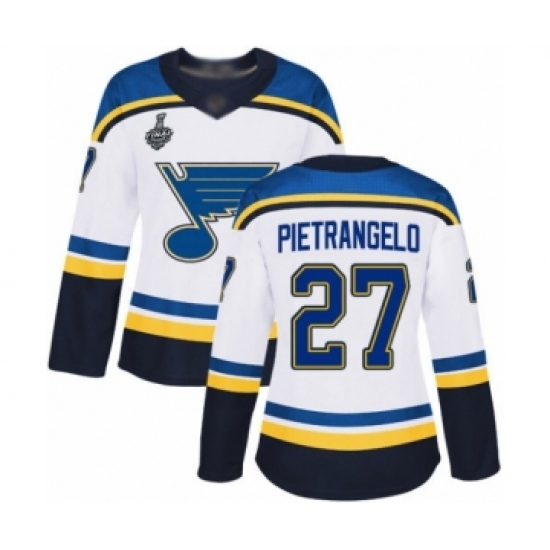 Women's St. Louis Blues #27 Alex Pietrangelo Authentic White Away 2019 Stanley Cup Final Bound Hockey Jersey