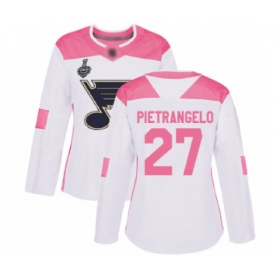 Women's St. Louis Blues #27 Alex Pietrangelo Authentic White Pink Fashion 2019 Stanley Cup Final Bound Hockey Jersey