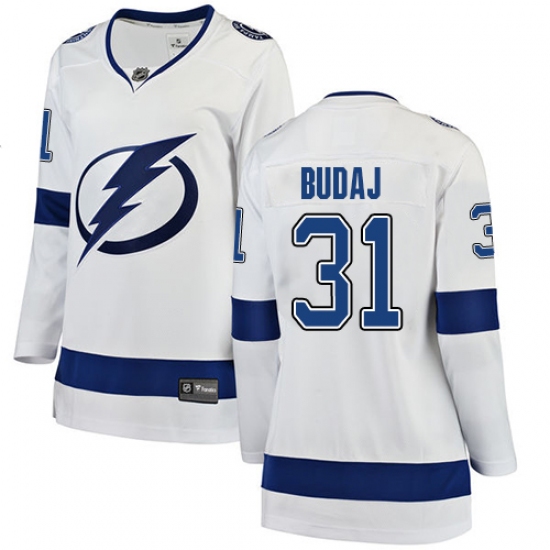 Home>NHL>Tampa Bay Lightning>Peter Budaj>Women's Tampa Bay Lightning #31 Peter Budaj Fanatics Branded White Away Breakaway NHL Jersey