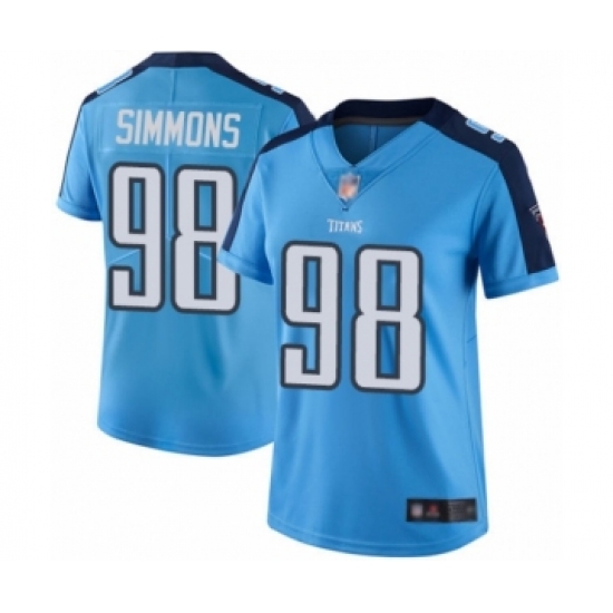 Women's Tennessee Titans #98 Jeffery Simmons Limited Light Blue Rush Vapor Untouchable Football Jersey
