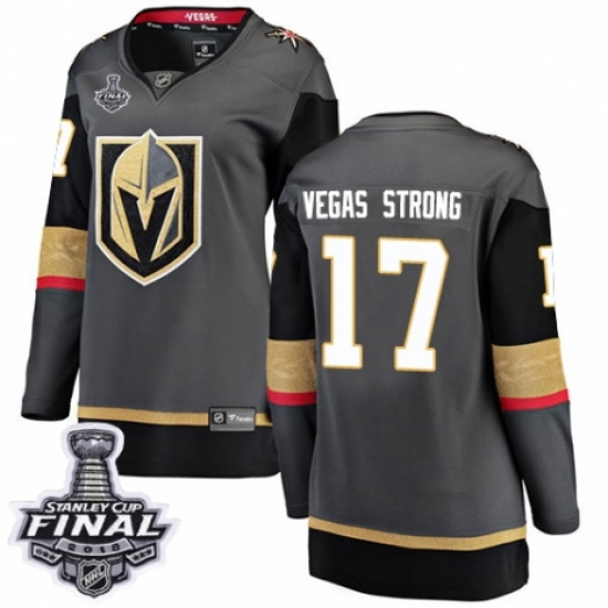 Women's Adidas Vegas Golden Knights #17 Vegas Strong Authentic Gray Home 2018 Stanley Cup Final NHL Jersey