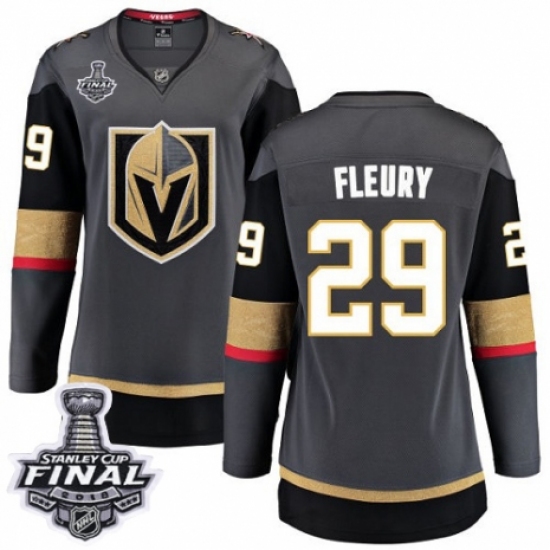 Women's Adidas Vegas Golden Knights #29 Marc-Andre Fleury Authentic Gray Home 2018 Stanley Cup Final NHL Jersey