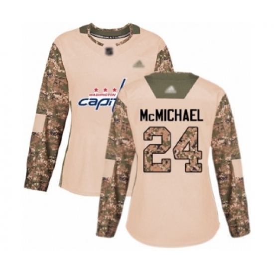 >Women's Washington Capitals #24 Connor McMichael Authentic Camo Veterans Day Practice Hockey Jersey