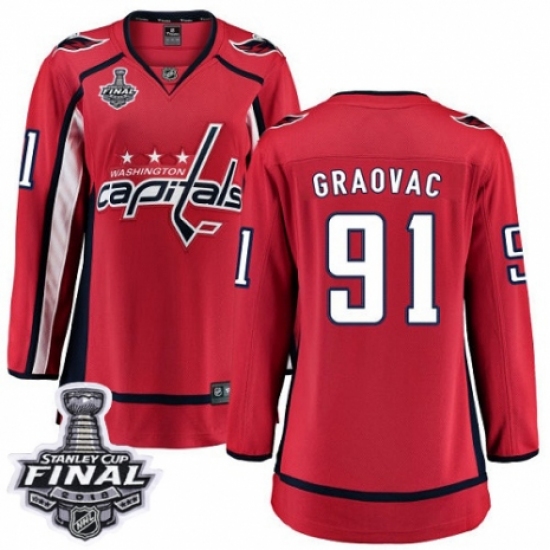 Women's Washington Capitals #91 Tyler Graovac Fanatics Branded Red Home Breakaway 2018 Stanley Cup Final NHL Jersey