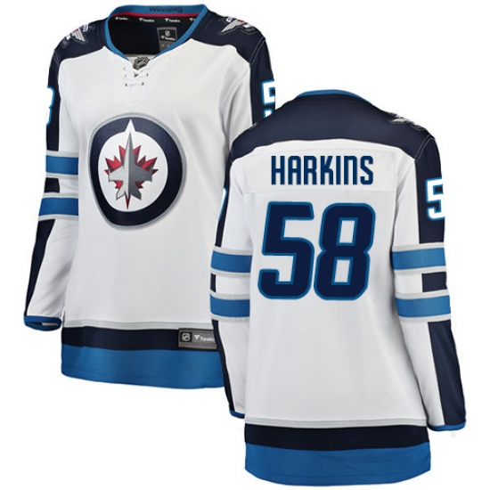 Women's Winnipeg Jets #58 Jansen Harkins Fanatics Branded White Away Breakaway NHL Jersey