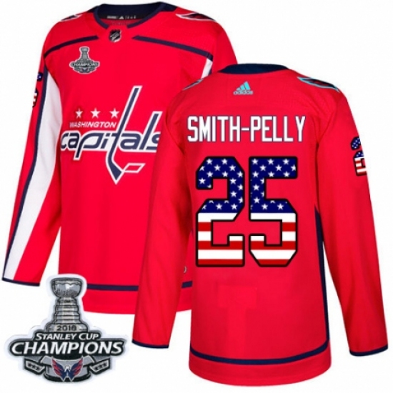 Men's Adidas Washington Capitals #25 Devante Smith-Pelly Authentic Red USA Flag Fashion 2018 Stanley Cup Final NHL Jersey