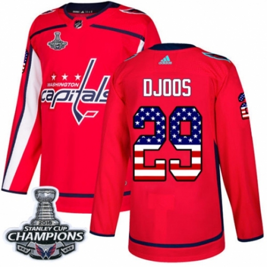 Youth Adidas Washington Capitals #29 Christian Djoos Authentic Red USA Flag Fashion 2018 Stanley Cup Final Champions NHL Jersey