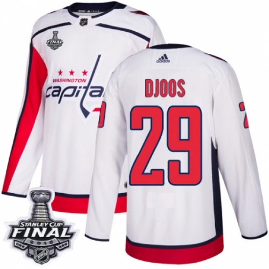 Youth Adidas Washington Capitals #29 Christian Djoos Authentic White Away 2018 Stanley Cup Final NHL Jersey