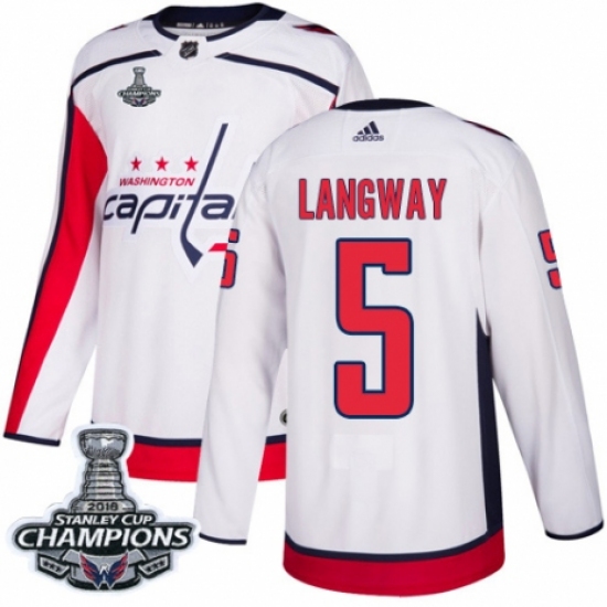 Youth Adidas Washington Capitals #5 Rod Langway Authentic White Away 2018 Stanley Cup Final Champions NHL Jersey