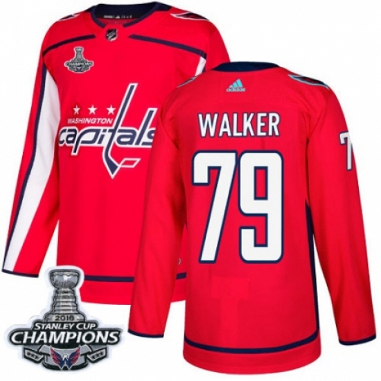 Women's Adidas Washington Capitals #79 Nathan Walker Authentic Red Home 2018 Stanley Cup Final Champions NHL Jersey