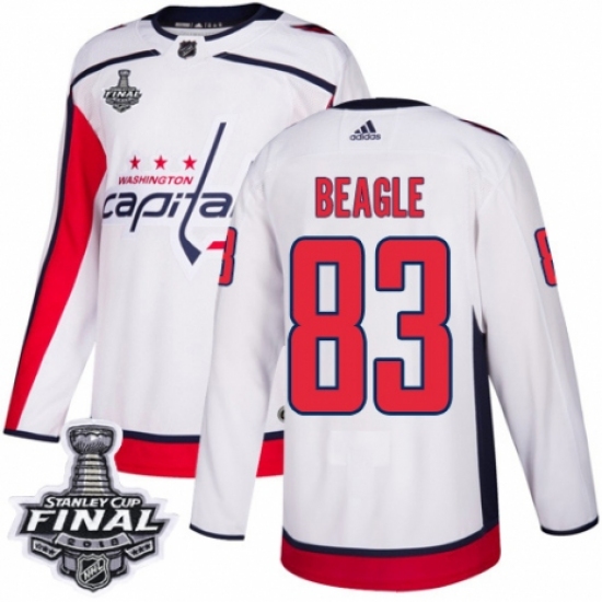 Youth Adidas Washington Capitals #83 Jay Beagle Authentic White Away 2018 Stanley Cup Final NHL Jersey