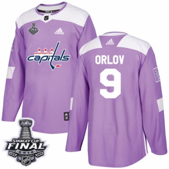 Youth Adidas Washington Capitals #9 Dmitry Orlov Authentic Purple Fights Cancer Practice 2018 Stanley Cup Final NHL Jersey
